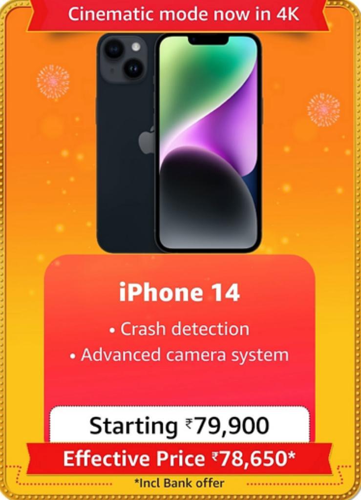 The recently launched iPhone 14 128GB model is available for Rs 79,900. The price of this phone is Rs 79,999 but the deal comes with a cashback of up to Rs 1,250 and an exchange bonus of Rs 15,550. The phone also has the option of 256GB and 512GB.